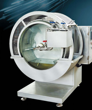 該轉(zhuǎn)鼓采用隔層泵熱循環(huán)技術(shù),對夾層中的介質(zhì)循環(huán)加熱,將熱量傳到鼓內(nèi),循環(huán)水與鼓內(nèi)皮液不直接接觸,鼓內(nèi)極易清洗干凈,且排水干凈,不留殘渣,不論是鼓內(nèi)有水、無水及處于停鼓狀態(tài)均可加熱保溫。加熱方式有電加熱和蒸汽加熱兩種,可任選一種,也可雙能源供熱。溫度由常溫至80°C之間可調(diào),控制精度±1°C,可滿足各工序的試驗需要。
